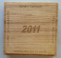 2011 was an extraordinary year in western Massachusetts: June 11th Tornado, July 27th Microburst, August 26-27 Hurricane. October 30 Snowstorm. Available in ash and cherry wood recovered from the tornado and microburst.